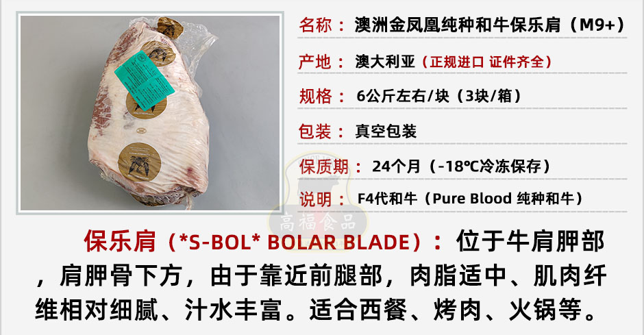 澳洲金鳳凰純種和牛保樂(lè)肩(M9+)