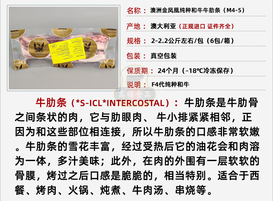 澳洲金鳳凰純種和牛牛肋條(M4-5)