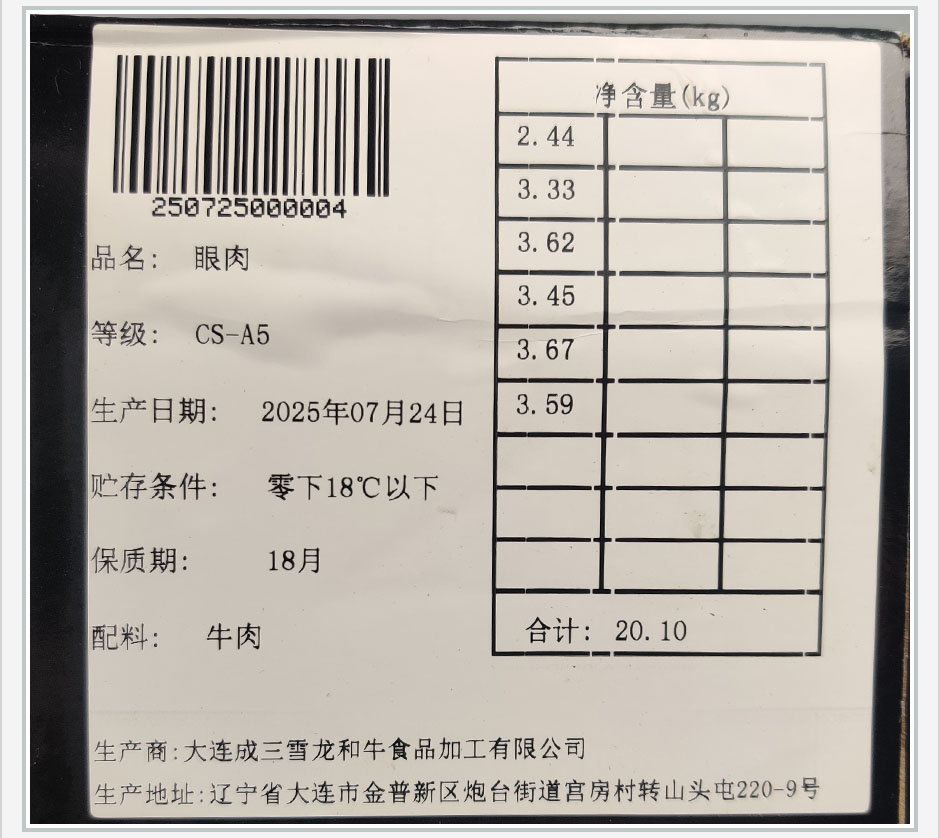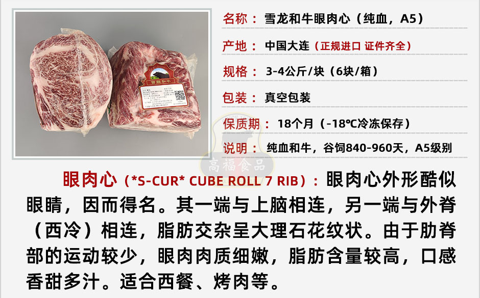 雪龍和牛眼肉心(純血,A5)